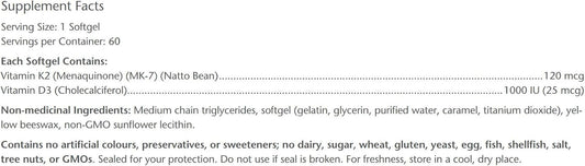 Bioclinic Naturals Vitamin D3 and K2 Softgels - 60 Count - Immune Support Supplement