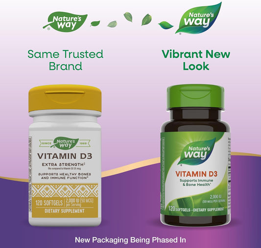 Extra Strength Nature's Way Vitamin D3 for Bone Health and Immune Function - 2000 IU (50 mcg) - 120 Softgels