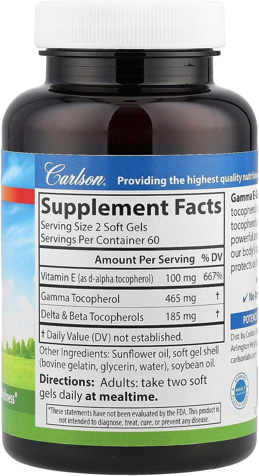 Carlson Labs Gamma E-Gems Softgels with 465 mg Gamma Tocopherol - 120 CountVendor:CarlsonRegular price $177.84 AUDRegular priceUnit price / per