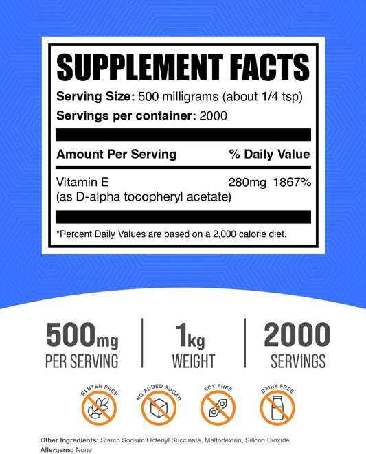 BulkSupplements.com D-Alpha Tocopherol Vitamin E Powder - 500mg per Serving, Gluten Free, 250g (8.8 oz) - Vitamin E SupplementsVendor:BulkSupplementsRegular price $146.12 AUDRegular priceUnit price / per-