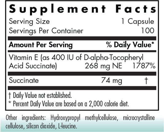 Nutricology Vitamin E Succinate Supplement 400 IU D-Alpha-Tocopheryl Antioxidant Capsules - 100ct