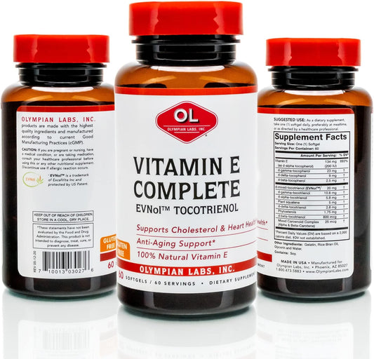 Olympian Labs Vitamin E Tocomin Softgels - 200IU, 60 Servings - Support Brain, Skin & Hair, Fight Free Radicals