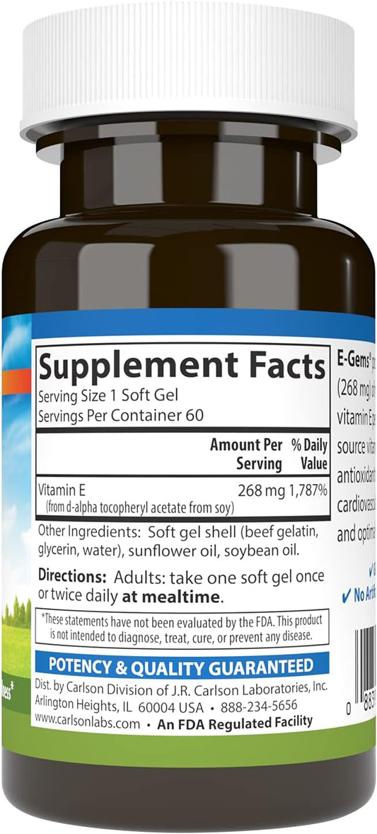Carlson Labs E-Gems Natural Vitamin E Softgels - 400 IU, 60 Count