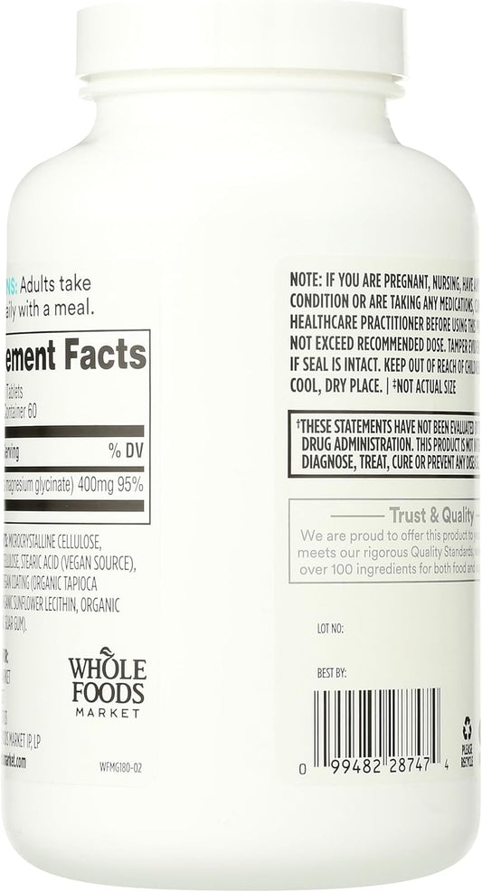 Whole Foods Market 365 Magnesium Glycinate 400 MG Capsules - 180 CountVendor:365 by Whole Foods MarketRegular price $127.10 AUDRegular priceUnit price / per-