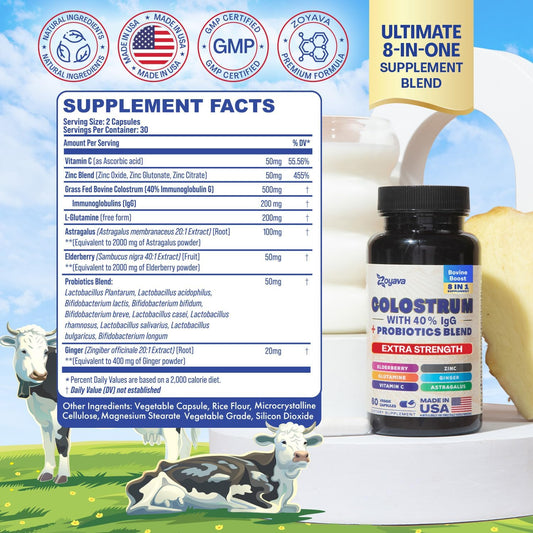 Zoyava Bovine Colostrum Supplement Capsules with Probiotics, Elderberry, L-Glutamine, Astragalus, Vitamin C, Ginger, and Zinc (60 Capsules)Vendor:KITMOUSRegular price $94.99 AUDRegular priceUnit price / per-