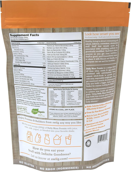 swiig Chocolate Mass Builder Protein Powder - Non-GMO, No Artificial Ingredients, No Fillers - 3.3lbsVendor:swiigRegular price $195.95 AUDRegular priceUnit price / per-