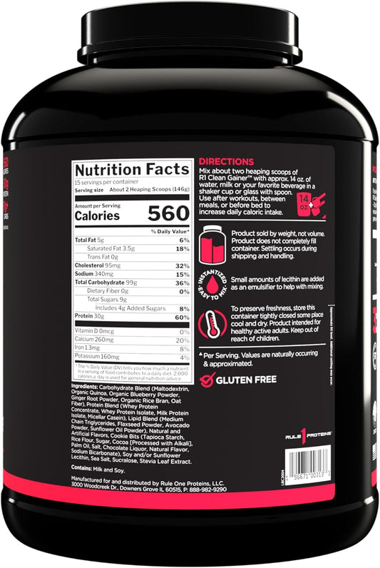 Rule One Proteins R1 Clean Gainer Cookies & Crème - High-Protein Lean Gain Formula with 560 Calories, 30g Protein, 90g Carbs, Under 6g Fat - 15 ServingsVendor:Rule 1 ProteinsRegular price $168.05 AUDRegular priceUnit price / per-