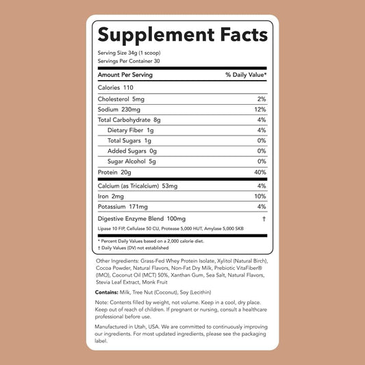 Natural Chocolate Whey Protein Isolate Powder - 25g Protein, Gluten & Soy-Free, Sugar-Free, 30 Servings - Fitness & Nutrition Shake Mix - 2.36 lbVendor:Fresh FieldRegular price $185.28 AUDRegular priceUnit price / per-