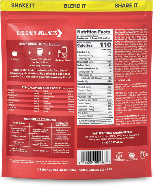 Natural Designer Whey Protein Powder with Probiotics, Fiber, and B-Vitamins for Energy - Gluten-Free, Summer Strawberry Flavor - 2 lbVendor:Designer WellnessRegular price $145.93 AUDRegular priceUnit price / per-