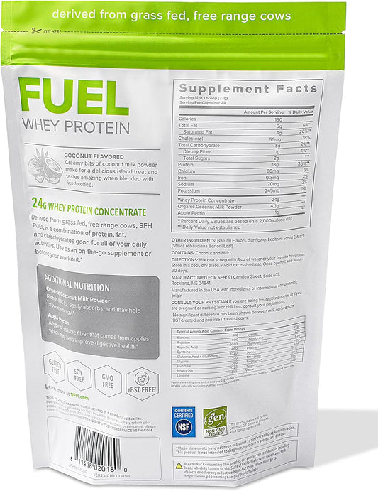 2lb Bag of SFH Fuel Grass Fed Whey Protein Powder with MCTs & Fiber - All Natural, Soy Free, Gluten Free, No RBST, Coconut FlavorVendor:SFHRegular price $192.18 AUDRegular priceUnit price / per-
