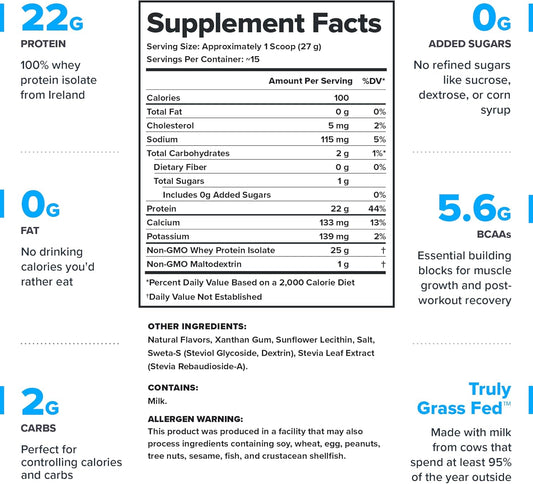 Grass Fed Whey Isolate Protein Powder - Low Carb, Low Calorie, Non-GMO, Lactose Free - Vanilla Flavor - 15 ServingsVendor:LEGIONRegular price $162.28 AUDRegular priceUnit price / per-
