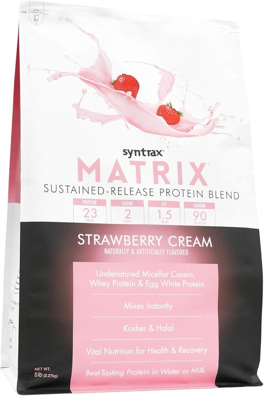2 lbs Syntrax Nutrition Matrix Sustained-Release Strawberry Cream Protein Blend - High-Quality Formula for Muscle Recovery & Growth