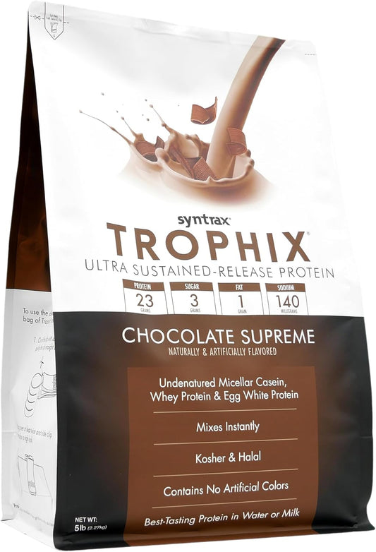 5 lbs Syntrax Nutrition Trophix Protein Powder, Chocolate Supreme - Ultra Sustained-Release Blend