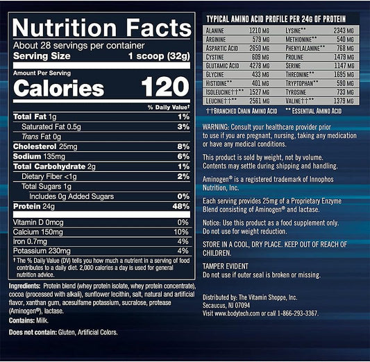 Rich Chocolate BodyTech Whey Tech Pro24 Powder - 2 lbs/ 28 Servings