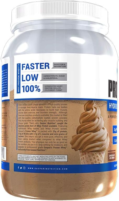Gaspari Nutrition Proven Whey - Chocolate Ice Cream Flavor, 100% Hydrolyzed Whey Isolate, High Protein, Lactose Free, Low Carb & Sugar - 2lb Pack