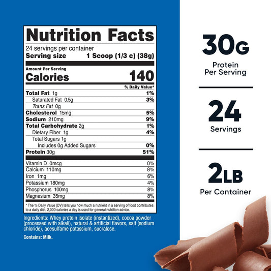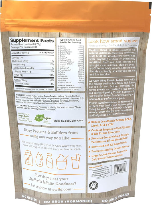 swiig Chocolate Lo-Carb Whey Protein Isolate Powder - No Artificial Ingredients - 2.2lb Bag