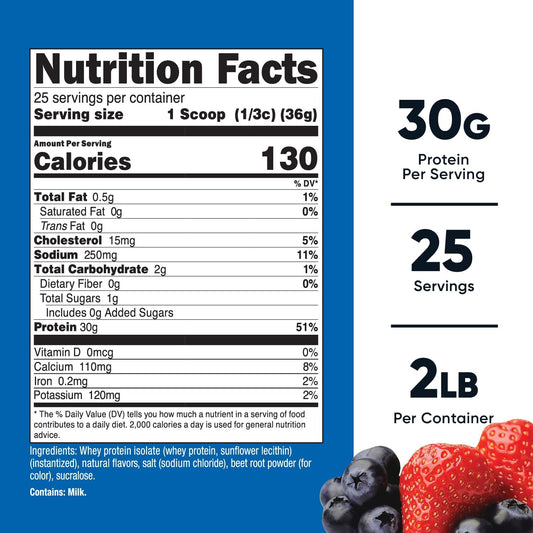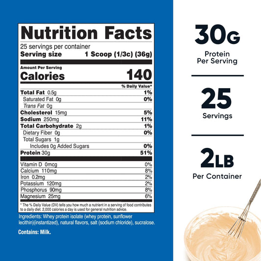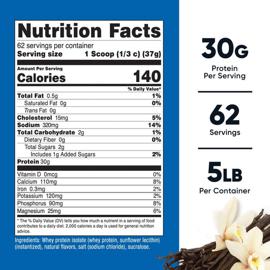Pure Vanilla Whey Protein Isolate Powder for Muscle Recovery - Low Lactose, 25g per Serving, 41 Servings, Post-Workout Drink