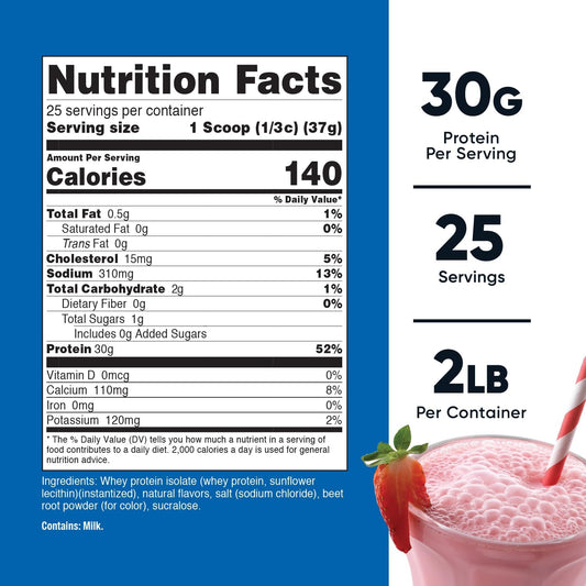 2LBS Nutricost Strawberry Milkshake Whey Protein Isolate - High-Quality Supplement for Muscle Recovery and Growth