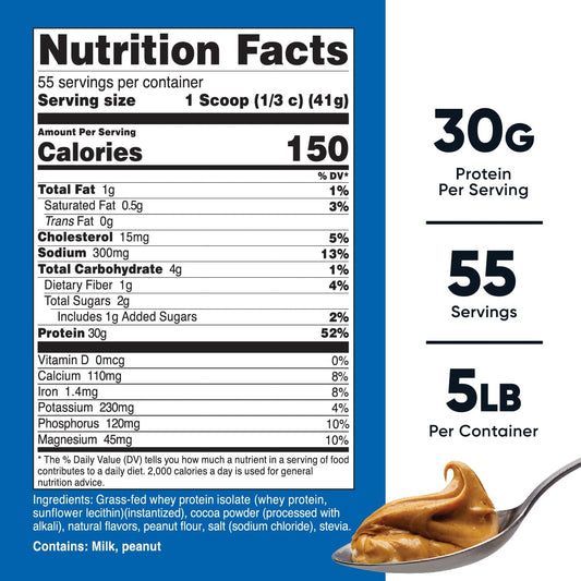 5LBS Nutricost Chocolate Peanut Butter Grass-Fed Whey Protein Isolate - Non-GMO, Gluten Free