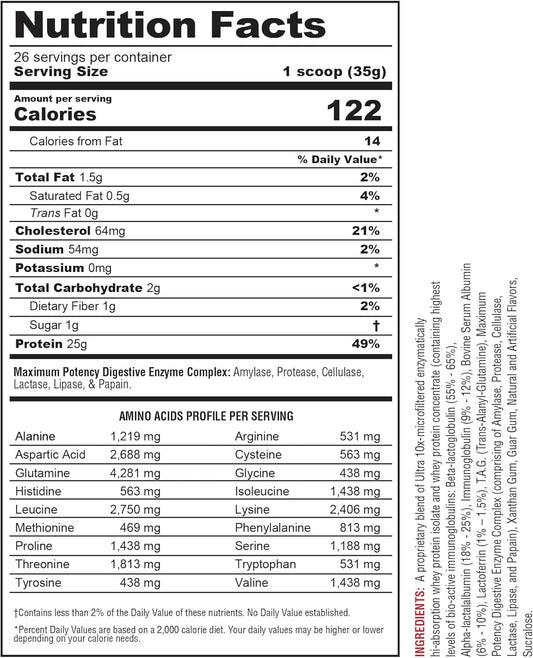 Protizyme 100% Whey Protein Powder with Digestive Enzymes, 24 Vitamins & Minerals - High Protein, Low Carb, Low Fat - 4lb (52 servings)