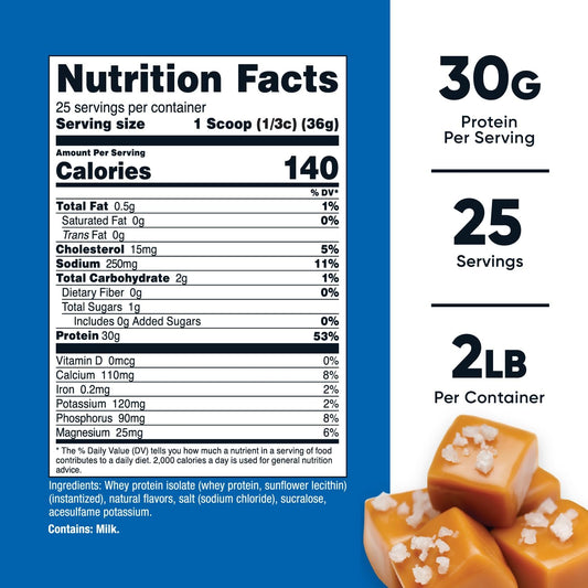 Nutricost Salted Caramel Whey Protein Isolate - 2LB Container for Enhanced Muscle Recovery
