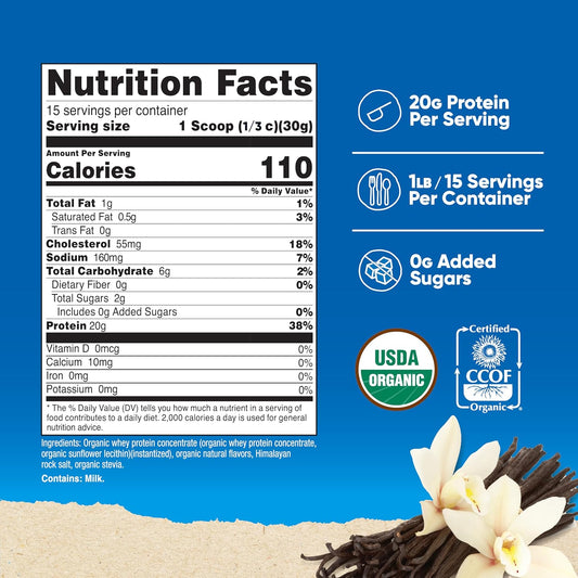 2lbs NorCal Organic Vanilla Whey Protein - Grass-Fed, Single-Origin Vanilla - Non-GMO & American Humane Certified from California Farms