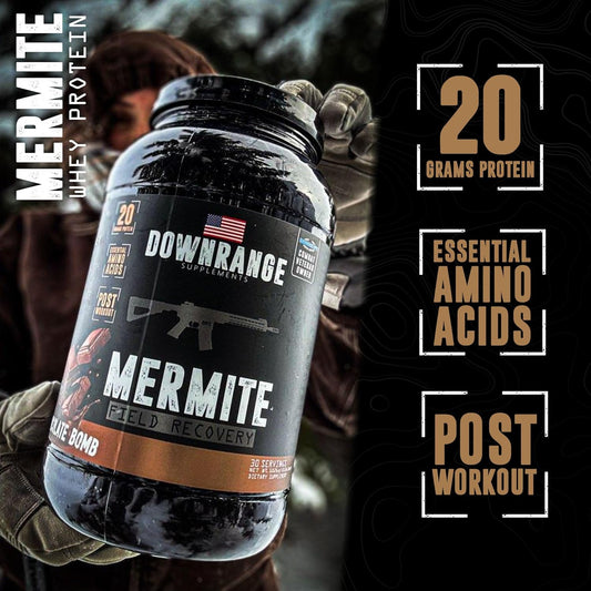 DownRange Mermite Whey Protein Powder - Post Workout Recovery, Energy Support - 20g Protein, 9g Amino Acids - Chocolate Flavor - 30 Servings