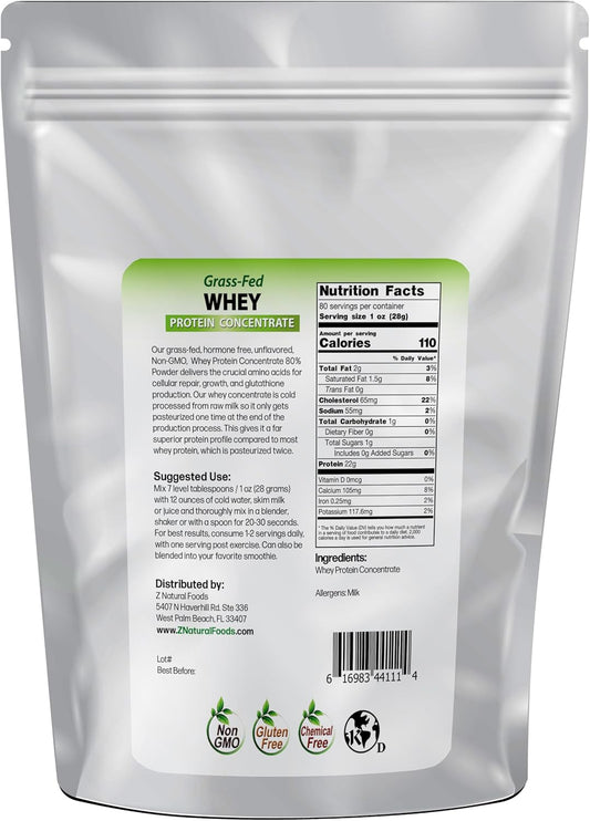 5 lbs Unflavored Grass-Fed Whey Protein Concentrate from New Zealand - Cold Processed Pure Powder with Essential Amino Acids for Nutrition & Fitness by Z Natural Foods