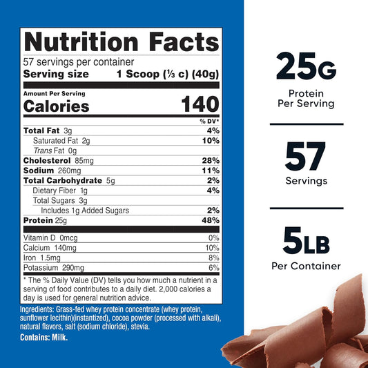Levels Nutrition Grass Fed Whey Protein Powder - 5LB, 25G Protein, Unflavored, No Artificial Ingredients