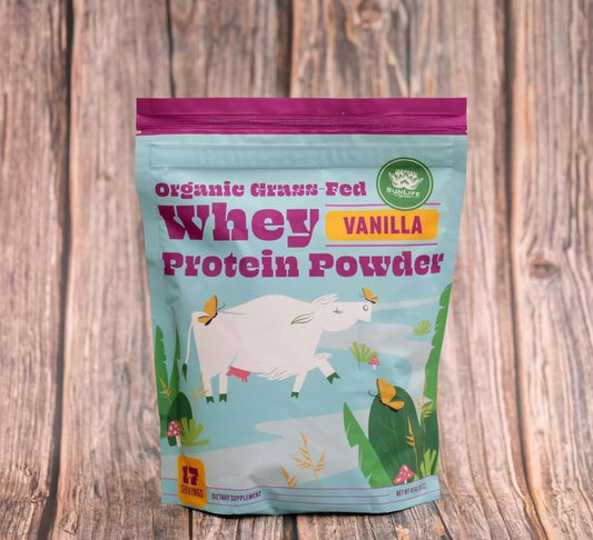 Organic Grass Fed Whey Protein Powder Vanilla - 100% Natural Protein for Men & Women, Sweetened with Cacao, Coconut Creamer, Stevia - 16 Oz, 15 Servings