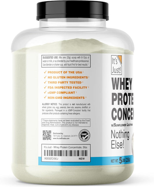 Premium 100% Whey Protein Concentrate, 5 Pound, Made in USA, Unflavored - No Added Flavors or Artificial Sweeteners