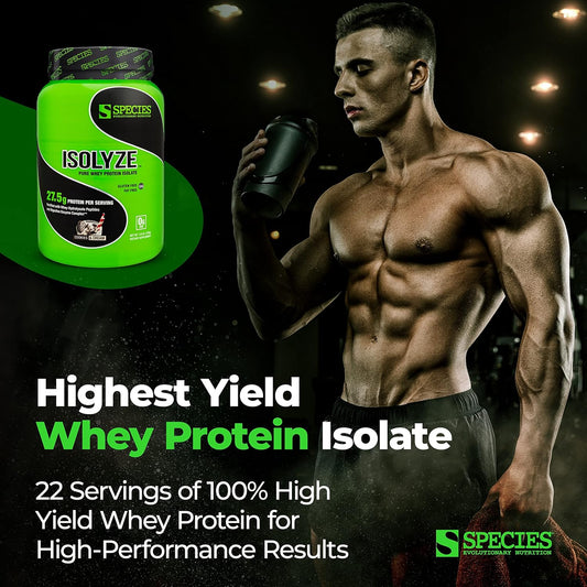 Species Nutrition Isolyze Whey Protein Powder - Cookies & Cream Flavor, 27.5g Protein Per Serving, 100% Whey Isolate for Muscle Growth, Low Fat & Sugar-Free Formula - 22 Servings