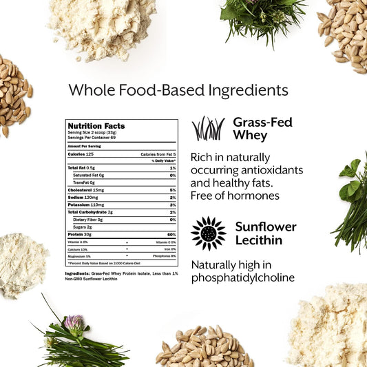 5lb Bulk Grass-Fed Whey Protein Isolate Powder for Post-Workout Shakes, Smoothies, and Recipes - Unflavored, All Natural, Gluten-Free, Keto-Friendly