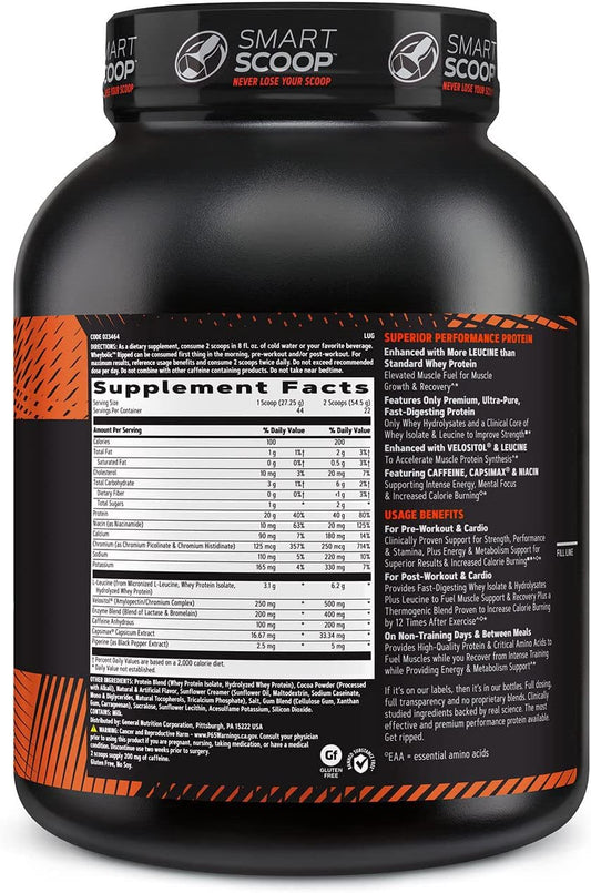 GNC AMP Wheybolic Ripped Whey Protein Powder Isolate with BCAA - Chocolate Peanut Butter Flavor, Gluten Free - 22 Servings for Muscle Building and Workout Support