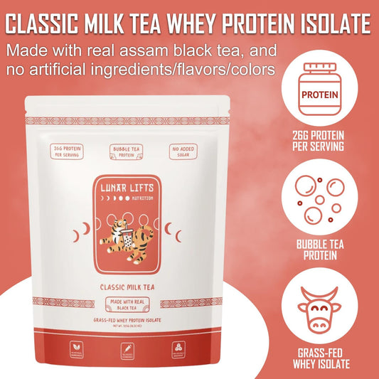 Grass-Fed Whey Protein Isolate Powder for Bubble Tea | Classic Milk Tea Boba Flavor | 26g Protein | No Sugar or Artificial Ingredients