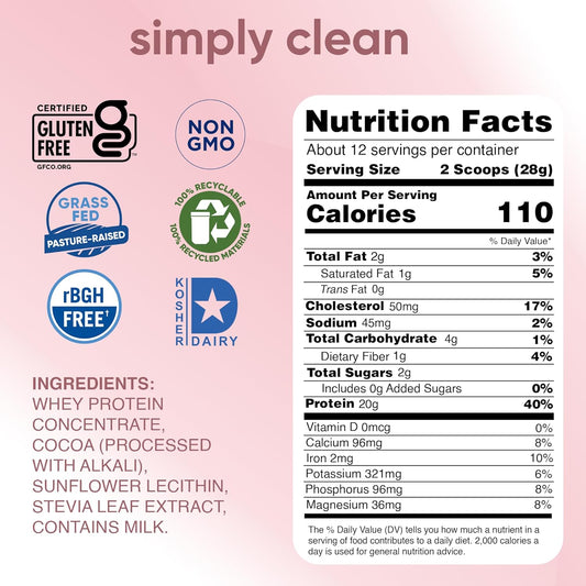 Levels Nutrition Grass Fed Whey Protein Powder - Pure Chocolate Flavor, 5LB - 24G Protein, No Artificial Ingredients