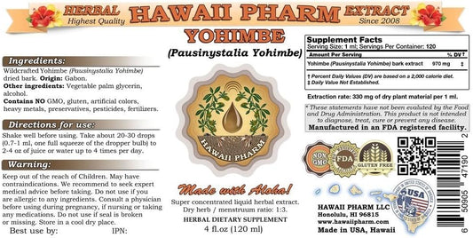 Hawaii Pharm Yohimbe Dry Bark Glycerite - All Natural Alcohol-Free Liquid Extract - 2 fl.oz - Vegan - Lab Tested - Made in HawaiiVendor:Hawaii PharmRegular price $124.53 AUDRegular priceUnit price / per-