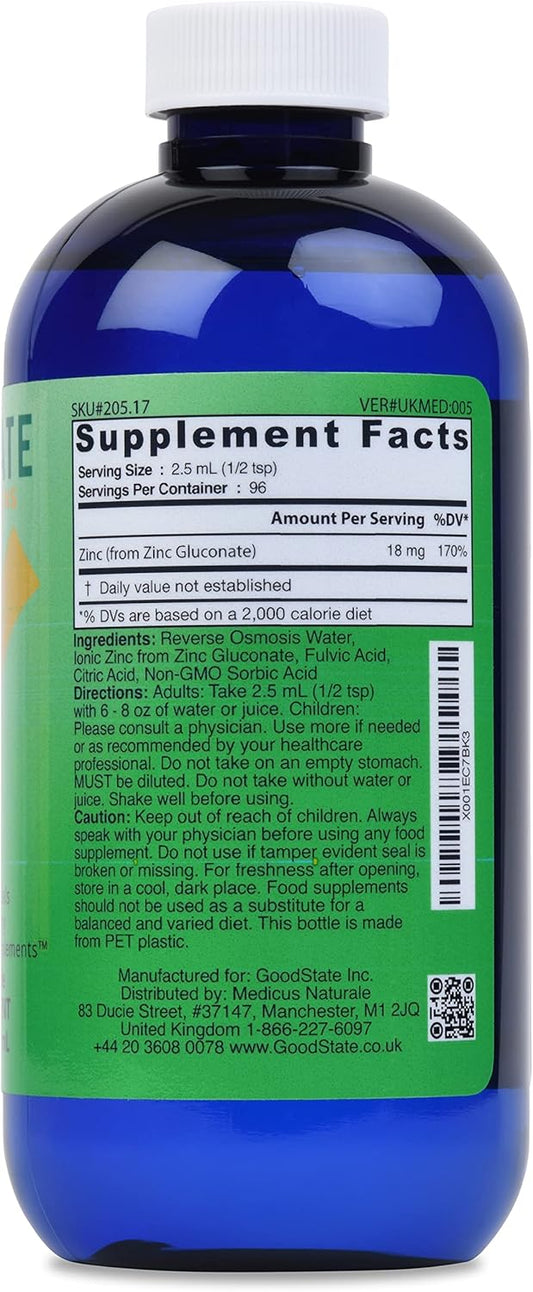 Highly Absorbable Liquid Ionic Zinc with Fulvic Acid - 96 Servings (18mg per serving) - 8 fl ozVendor:Good StateRegular price $119.69 AUDRegular priceUnit price / per-