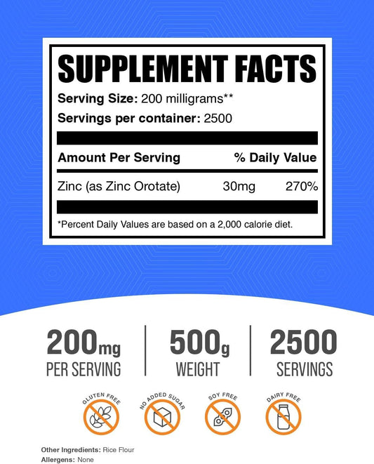 BulkSupplements.com Zinc Orotate Powder - 500g (1.1 lbs) - Immune Support Zinc Supplement - 30mg Zinc Minerals - Gluten Free - Pack of 1Vendor:BulkSupplementsRegular price $189.82 AUDRegular priceUnit price / per-