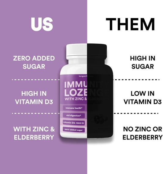 Immune Support Lozenges with Elderberry, Zinc, and Vitamin D3 for Men, Women & Kids | Non-GMO, Gluten-Free, Caffeine-Free | 60 CountVendor:Camp LongevityRegular price $112.28 AUDRegular priceUnit price / per-