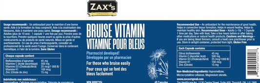 Pharmacist Developed Bruising Supplements with Zinc, Vitamin K, D3, Ascorbic Acid, Citrus Bioflavonoids - 60 CapsulesVendor:ZAX'S ORIGINALRegular price $144.39 AUDRegular priceUnit price / per-
