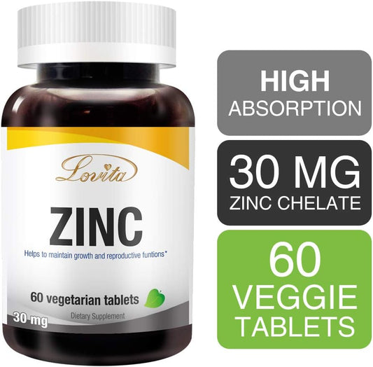 Chelated Zinc Supplements 30mg for Immune Support & Healthy Skin | Vegan & Non GMO | 60 TabletsVendor:LovitaRegular price $94.99 AUDRegular priceUnit price / per-
