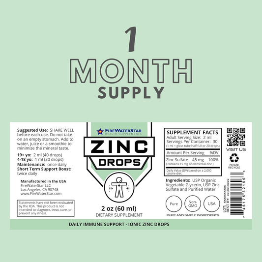 Organic Liquid Zinc Drops - Immune Support Supplement for Adults & Kids - Non-GMO, Vegan - 45mg - Boost Immunity, Healthy Skin, WellnessVendor:FIREWATERSTAR HEALTH SUPPLEMENTSRegular price $94.99 AUDRegular priceUnit price / per-