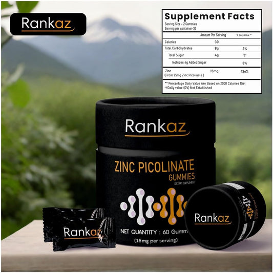 Zinc Picolinate 15 mg Chewable Gummies for Immune System and Hormone Support - 60 Servings for Joint Health, Muscle Growth, and Wound HealingVendor:RANKAZRegular price $123.80 AUDRegular priceUnit price / per-