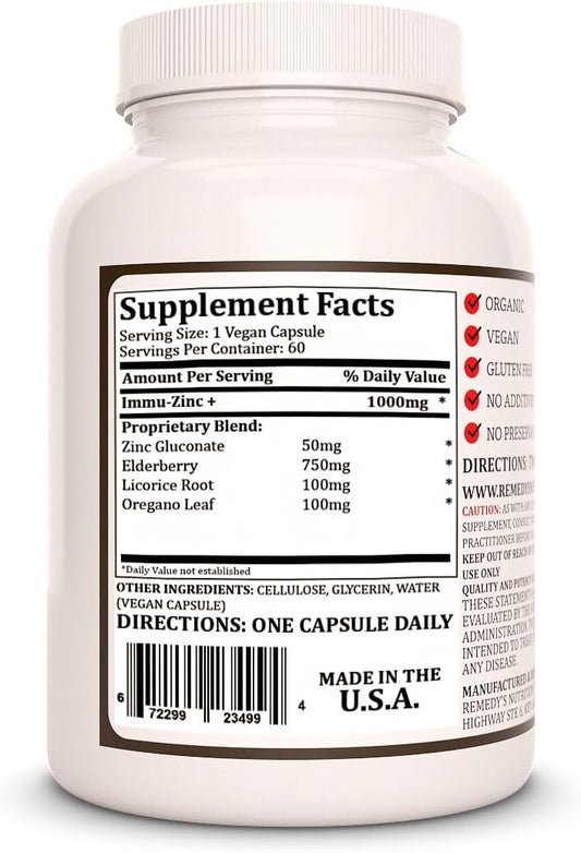 Immune Support Dietary Supplement with Elderberry, Licorice, and Oregano - 60 Vegan Capsules, Non-GMO, Gluten-Free, Dairy-FreeVendor:Remedy's nutritionRegular price $144.39 AUDRegular priceUnit price / per-
